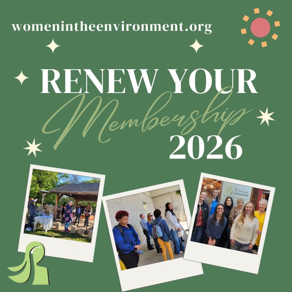 Join now! Memberships for the 2026 year are open. Join as an individual or as an organization. WE is looking forward to a new year and has some great activities in the works. Join with other like-minded women and build your network with a membership in Women in the Environment.