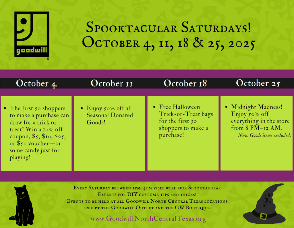 All Goodwill North Central Texas Locations (except Outlet and GW Boutique)